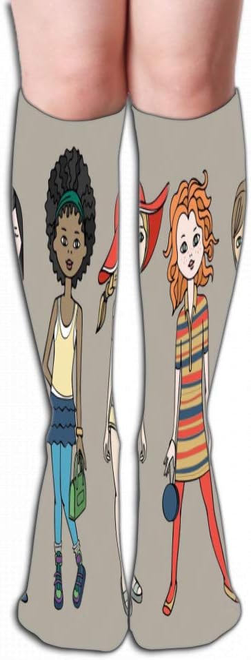 Print Women S Knee High Socks Athletic Over The Calf Tube 19 7 50cm Set Ute Teen Girls Fashion Outfits Body Template Dress Up Paper Doll Socks Amazon Canada