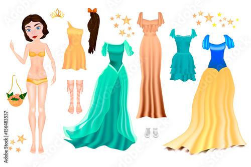 Paper Doll Of A Pretty Princess With Clothes Stock Vector