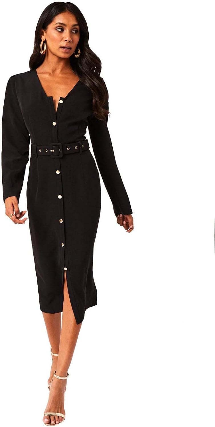 Paper Dolls Bianco Black Button Detail Belted Midi Dress Amazon