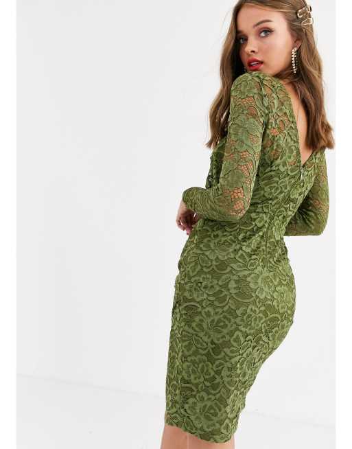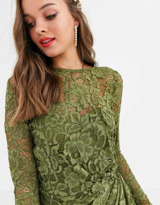 Paper Dolls Long Sleeve Lace Mini Wrap Dress In Olive Asos