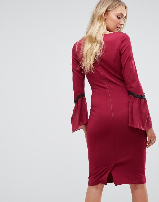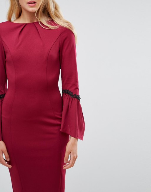 Paper Dolls Tall Long Sleeve Midi Dress Wine Dresslover Uk