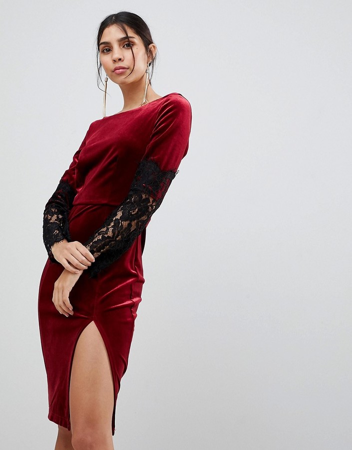 Paper Dolls Lace Long Sleeve Velvet Dress Asos