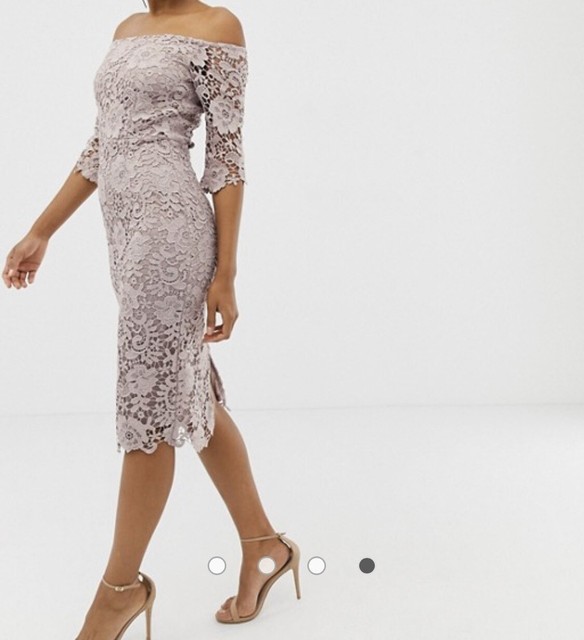 Paper Dolls Crochet Lace Bardot Midi Pencil Mink Dress We Select