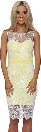 Paper Dolls Lemon Lace Overlay Midi Pencil Dress Uk 10 Yellow