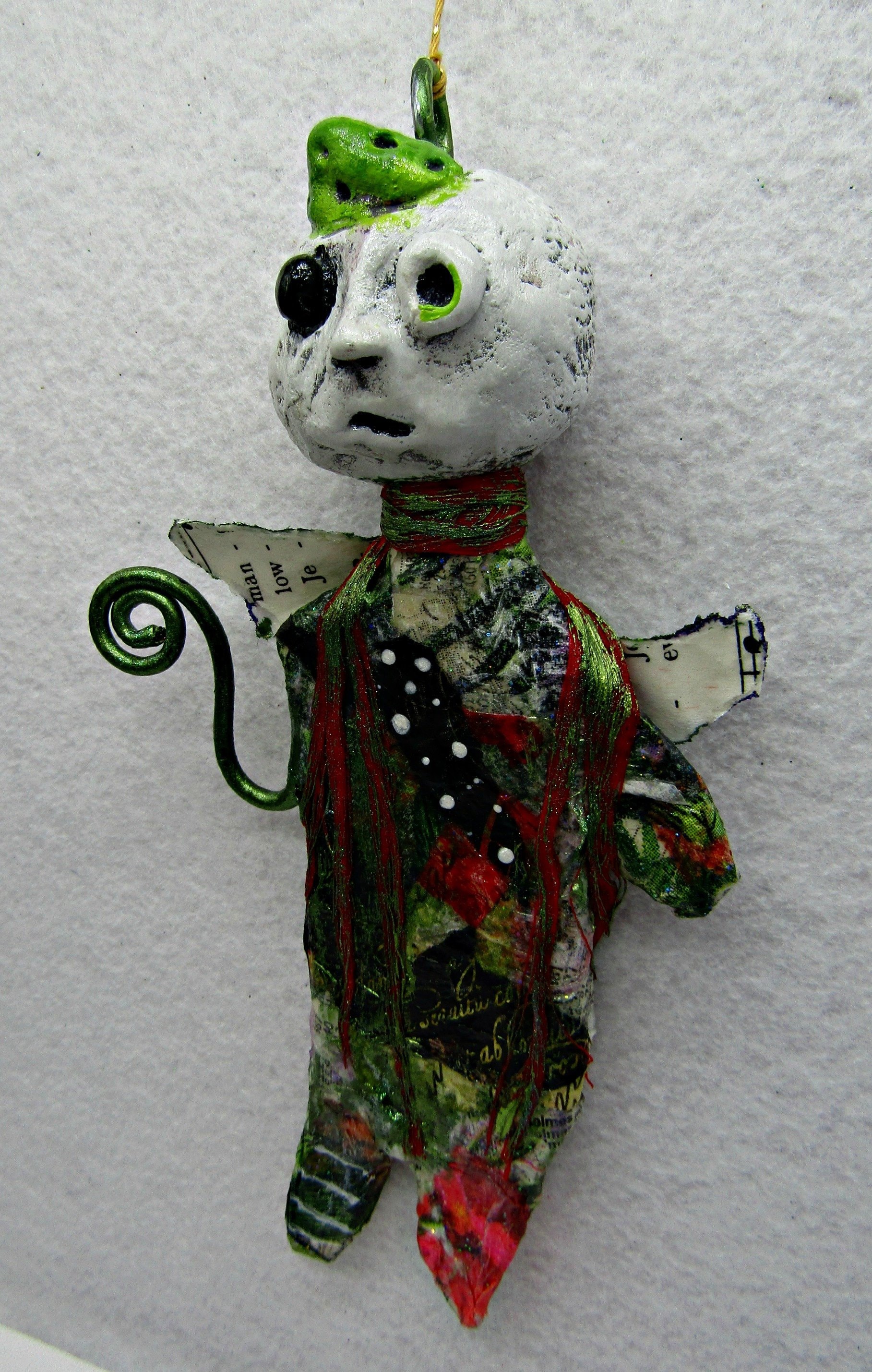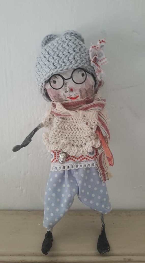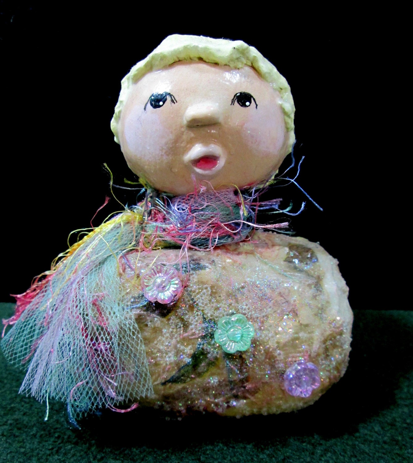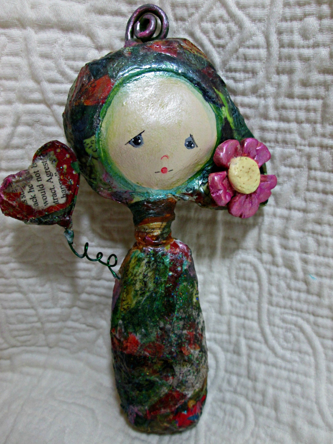 Art Doll Ornament Papier Mache Clay Handmade One Of A Kind Original Sculpture Gift Doll Mixed Media Collage Art Doll Collectors Gift