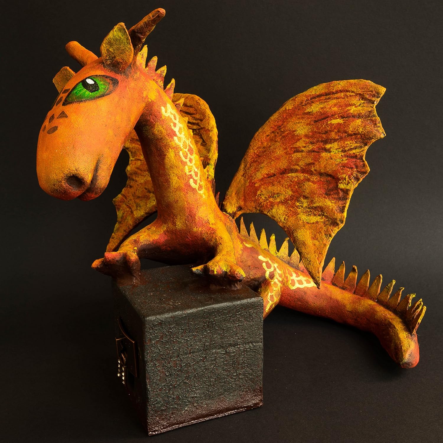 Amazon Com Kind Evil Dragon Ooak Handmade Art Doll Winged Monster And Coffer Papier Mache Sculpture Unique Original 3d Artwork Handmade