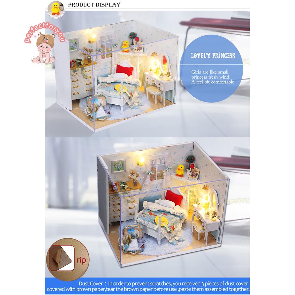 Kits Diy Dollhouse Bed Miniature With Led Furniture Dust Cover