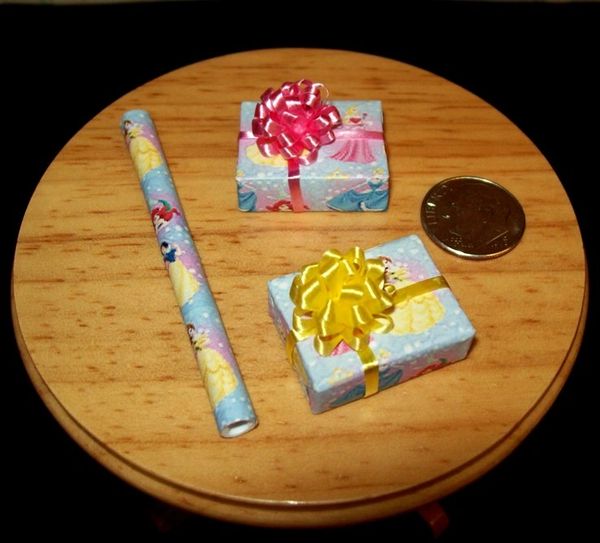 Dollhouse Miniature Wrapped Packages And Wrapping Paper Roll Set